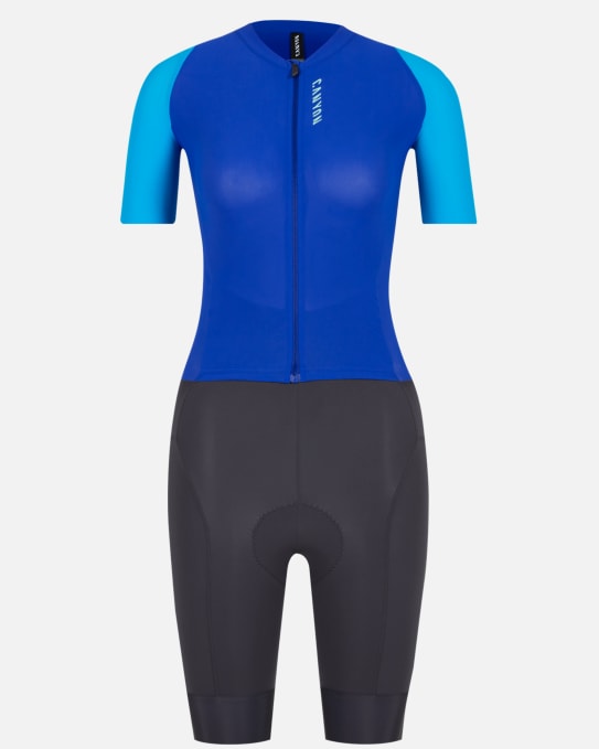 Utilisant les dernières technologies en matière de conception et de tissu, la combinaison pour femme Canyon Signature Pro a été développée pour offrir un maximum d'aérodynamisme et de confort.